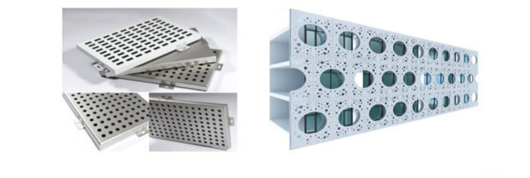 沖孔鋁單板,是普通鋁單板在氟碳噴涂前按照客戶要求及工程實(shí)際情況,利用各種數(shù)控設(shè)備在其上加工出各種形狀的穿孔,最后經(jīng)氟碳噴涂形成的沖孔鋁單板。沖孔鋁單板除具備普通鋁單板的各種優(yōu)點(diǎn)外,還具備各種穿孔,減輕重量,方便建筑排氣等優(yōu)勢(shì)。